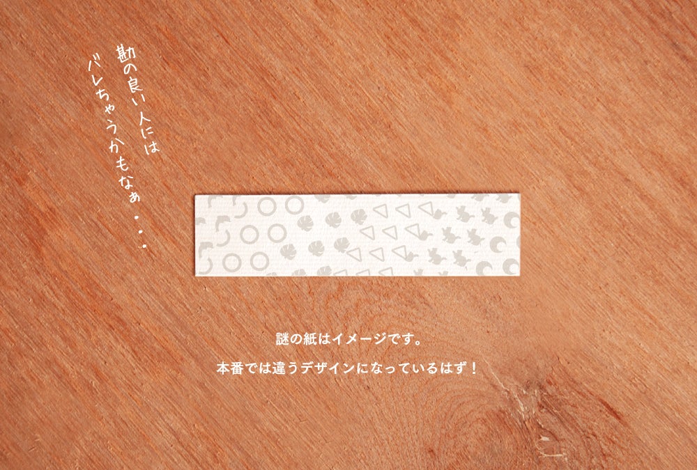 CAMPFIREからご支援いただいた方は、当日会場にあるシークレットイベントの受付までお越しください。そこでCAMPFIREに登録しているお名前をお伝えいただければ、この「謎の紙」をお渡しします。