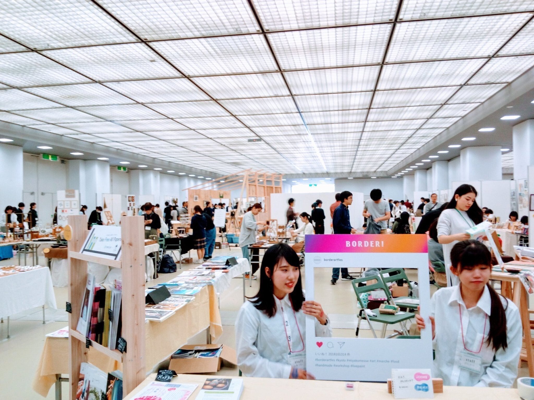 BORDER!は京都河原町五条に本店を構える画材屋「画箋堂」と、関西美大生団体「SHAKE ART!」が運営する、アートに関心のある学生や若手クリエイターの発表のイベントとしての昨年からスタートしました。[ アート・マルシェ・フード ]の3つのセクションからなるこのイベント、今年のテーマはずばり「アートに、あと一歩!」です。