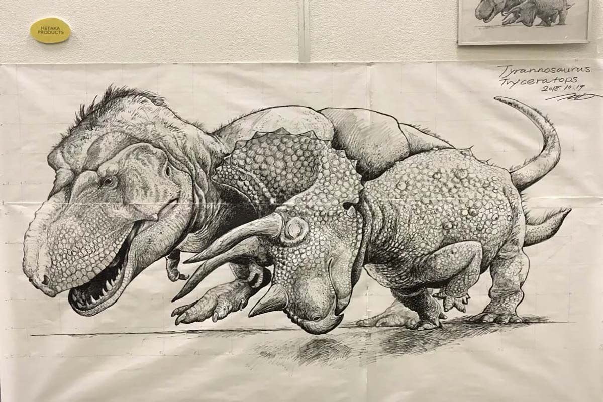 タイムスリップしてスケッチしてきたかのようなリアルな恐竜たち、今にも動き出しそうです…!