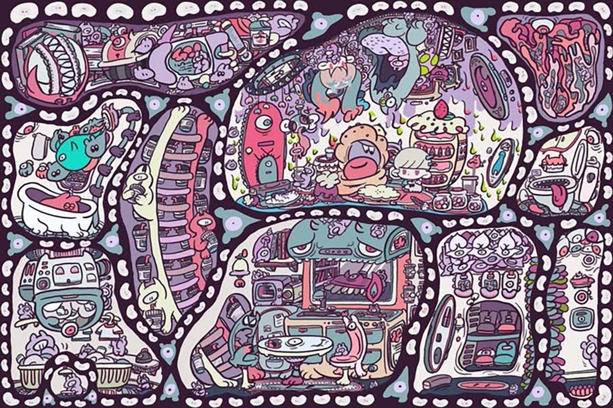 おもちゃ箱のような絵をかきたい。少し気持ち悪くて可愛い世界を作ります。