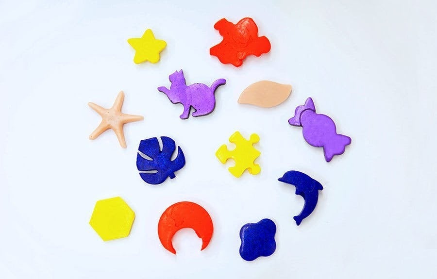 型に流し込めば、かわいい形と色の、あなただけのクレヨンの出来上がりです!