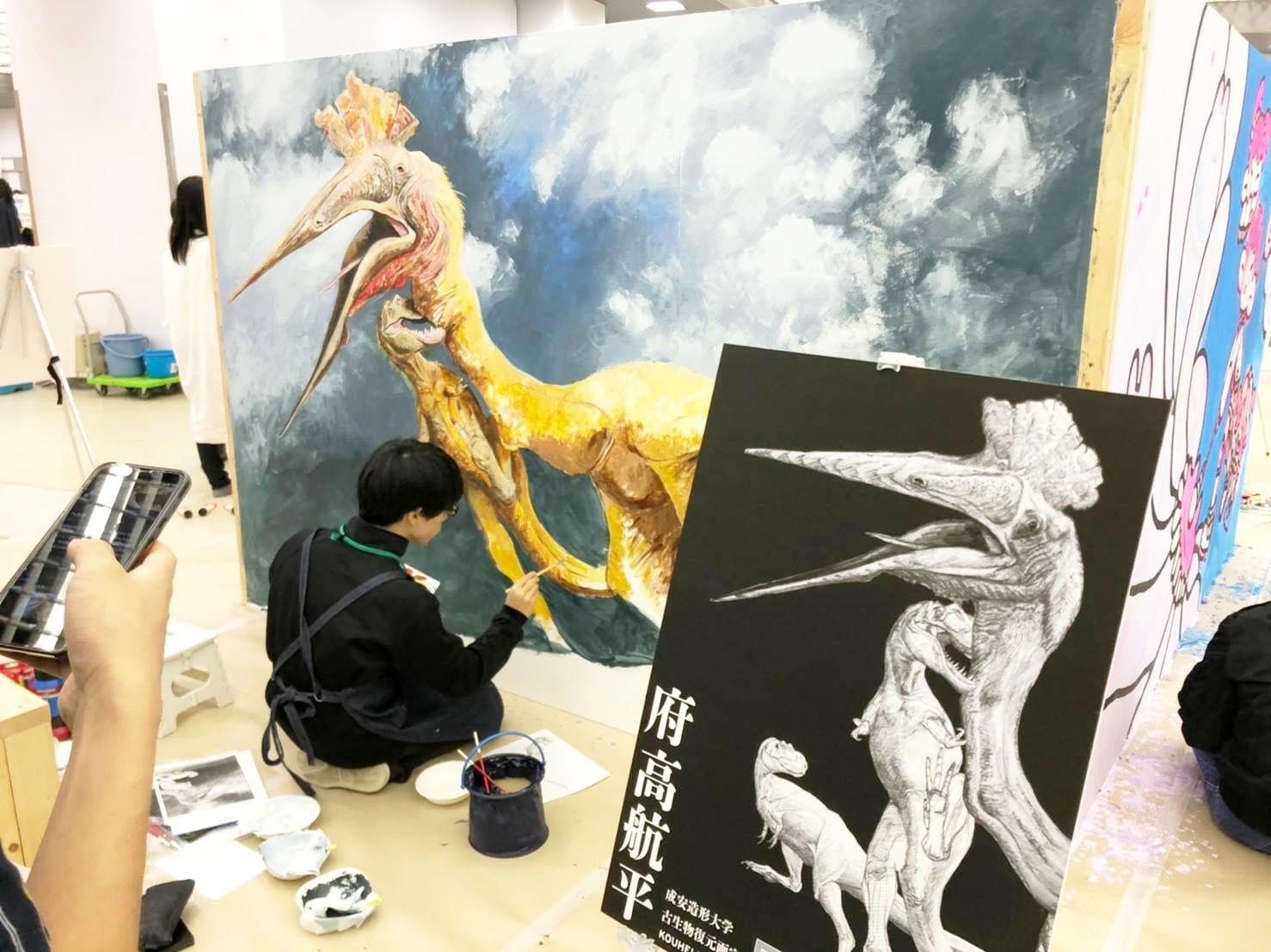 ライブペイントも四面パネルに四組の作家さんがそれぞれの個性的な世界を展開していました。昨年よりたくさんの方に興味を持っていただけたようで、投げ銭によるご支援額は昨年より大幅にアップしていたようです。