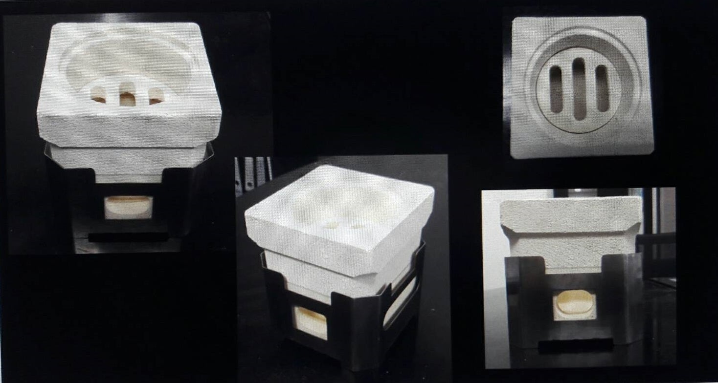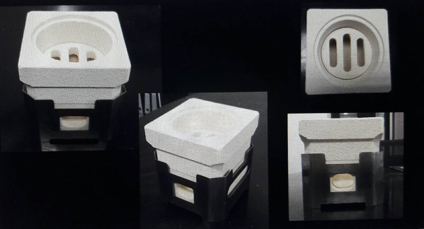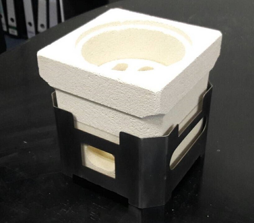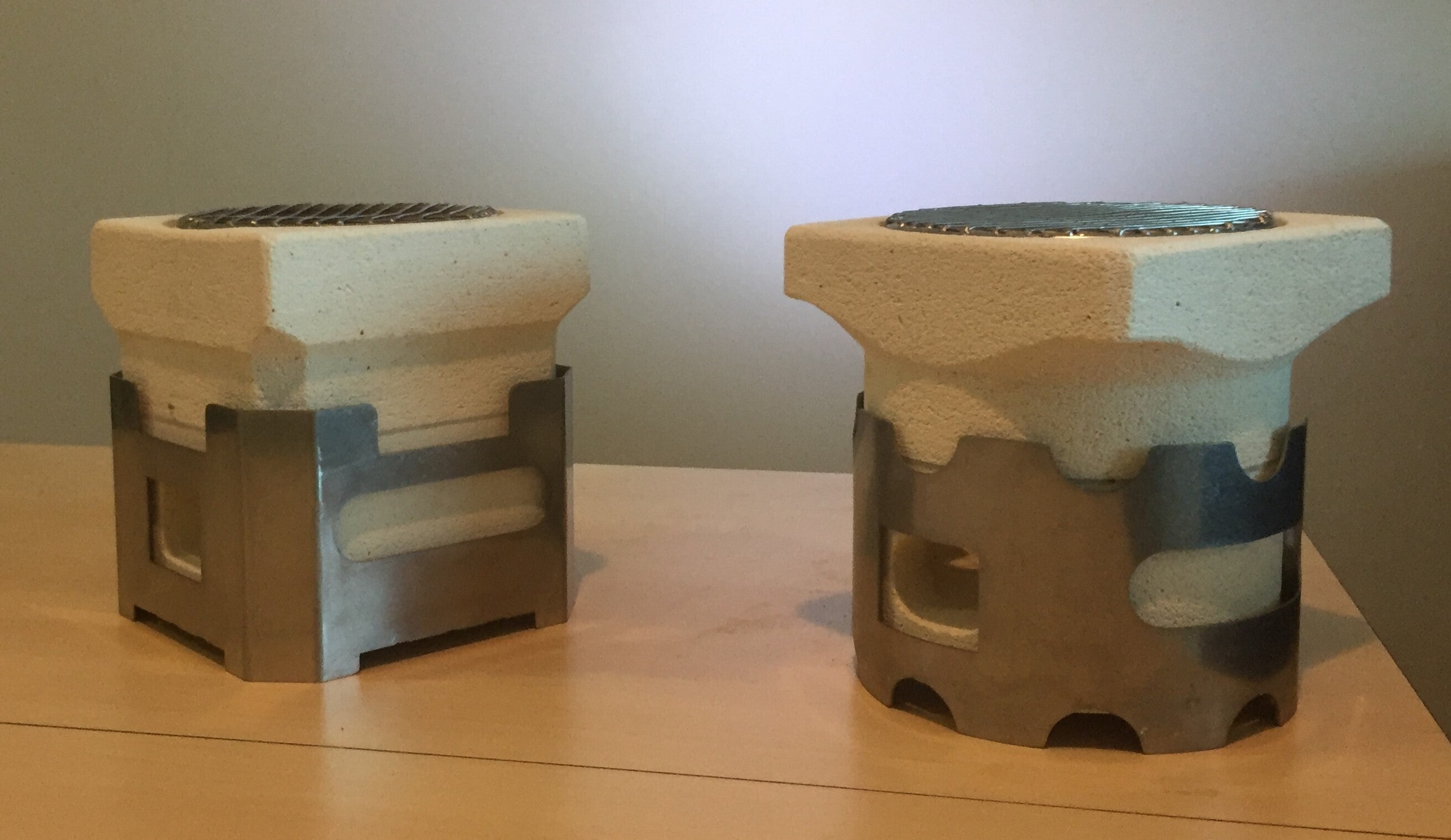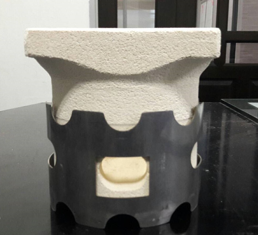 しちりんなど生産工場のアドバイスを取り入れ。1300度に耐える。密度の違う耐火セラミック2種類を使用して軽量化。