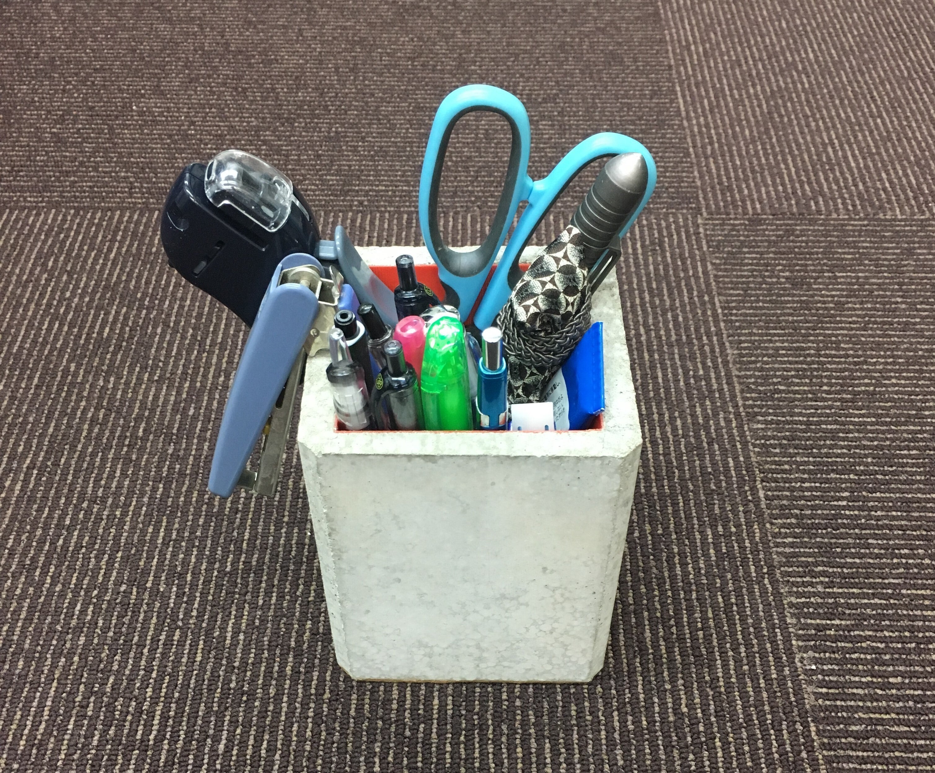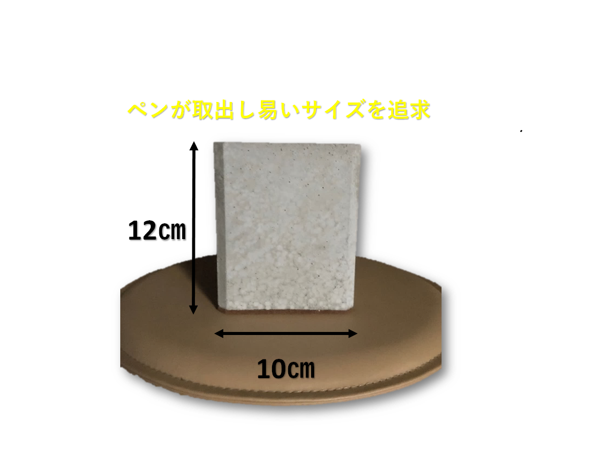 サイズは大きめですが、軽量骨材を使用しているので、片手で軽々持ち運びできます。内側はPLA素材で出来ており、筆記具がモルタルと擦れて傷つくことはありません。