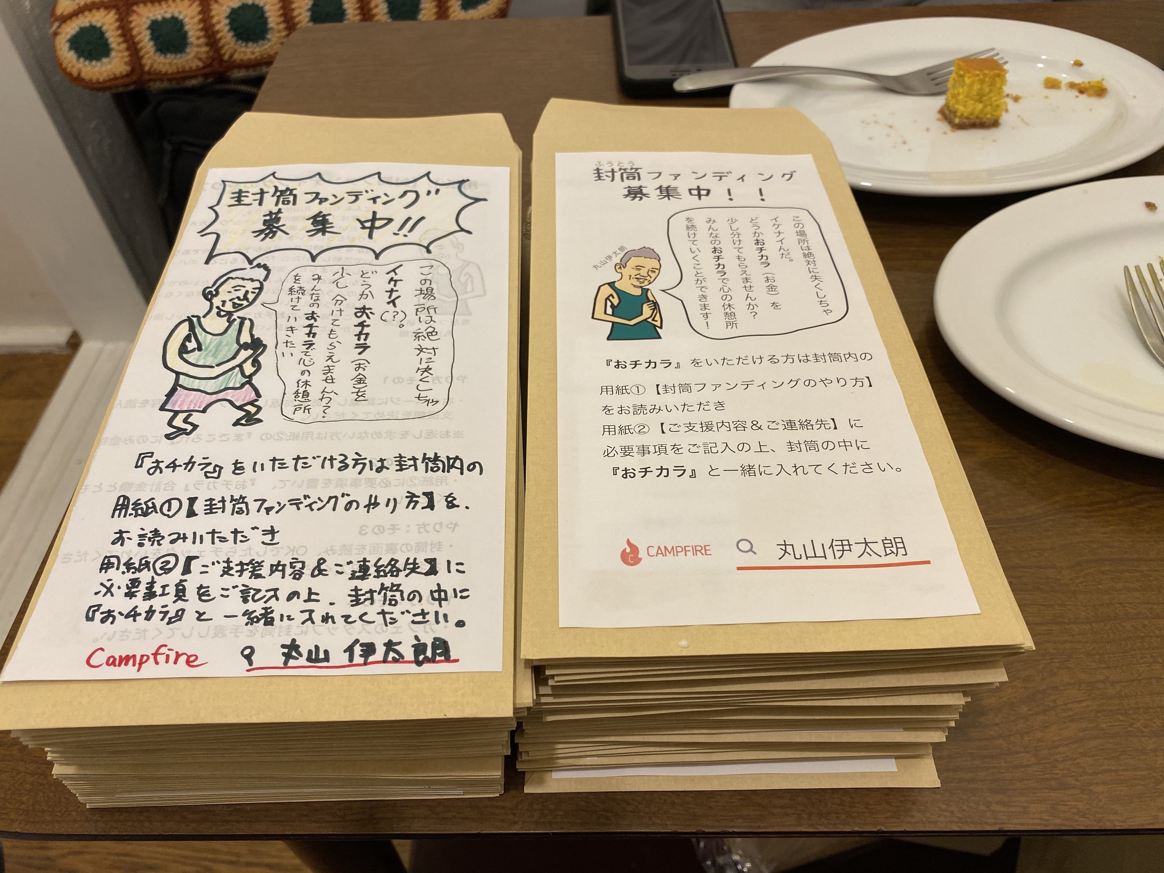 店頭でお願いしています、封筒アナログファンディングでご支援していただいた皆さんの数を含めますと150人以上の皆さんに心寄せていただいています。
