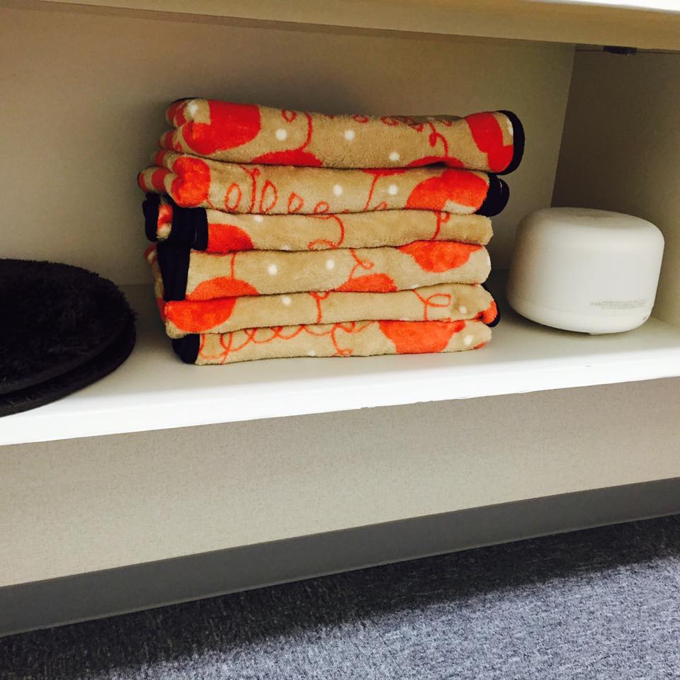 冬のオープンなので女性にうれしいひざ掛けや加湿器つき。室内へはスリッパでお上がりください。