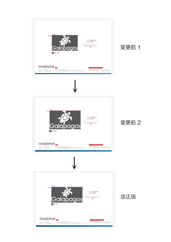 変更前1) 亀の大きさが目立つので幅を120mm(亀はそのまま)でお願いできないでしょうか?