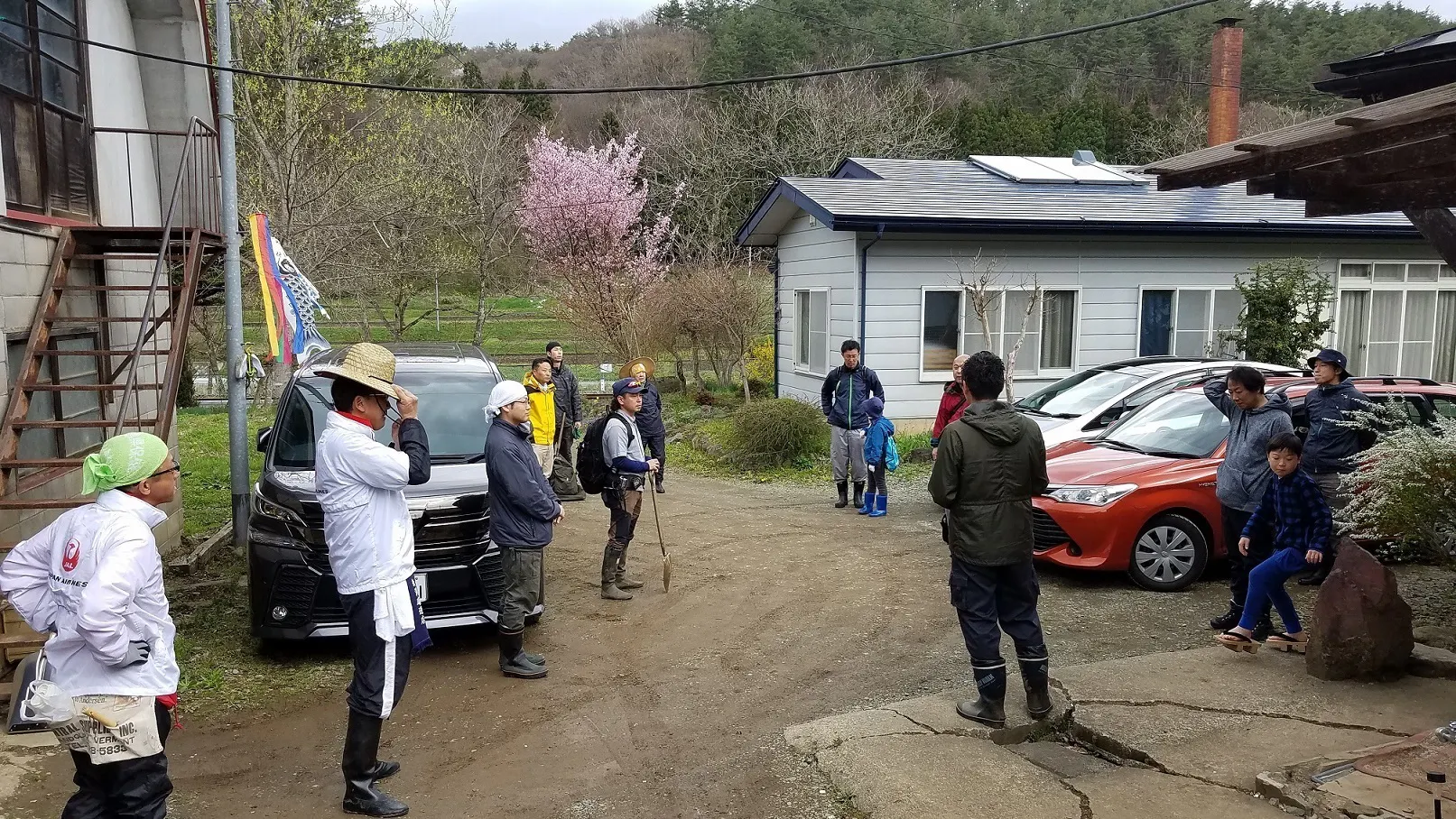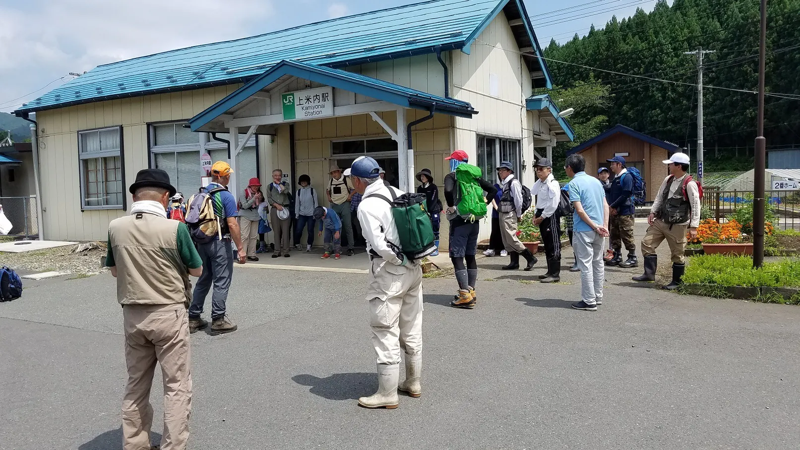 ハイキングで集合している方々列車はもちろん自動車、バイク、自転車や徒歩など様々な交通手段と上米内駅を織り交ぜたたツアー企画などを行いたいと思います。