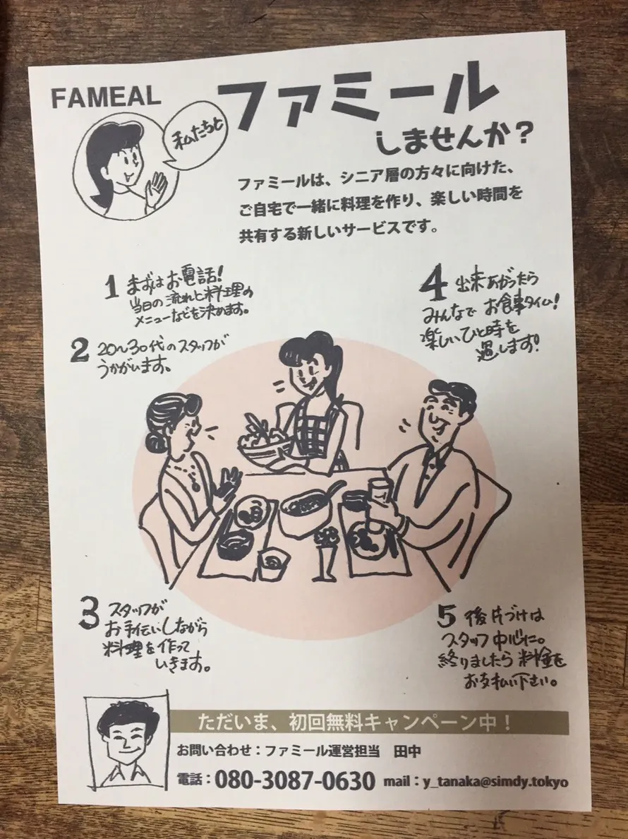 FAMEALを知っていただき、そして使っていただくために、近々シニアの方が集まる場所に足を運び、チラシを配ろうと考えています。