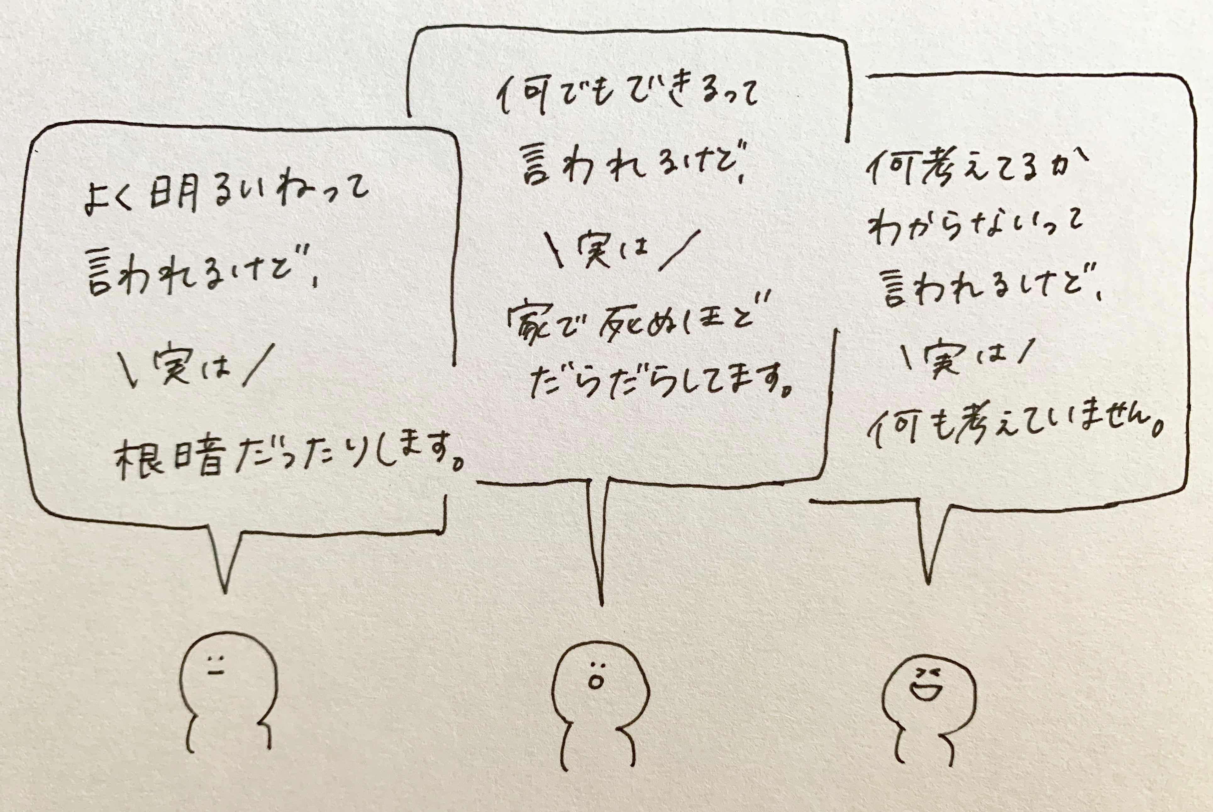まだまだ他にも周りからの評価やイメージとは実は違うんだよなーという人いると思います。