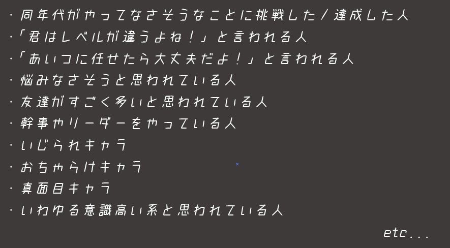 一見強そうで、世の中の立ち回りがうまくて、友達めちゃ多そうで、人よりすごいことやっていると思われる人たち。