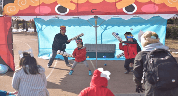 きびーっすは桃太郎と鬼になってきび団子を投げたり