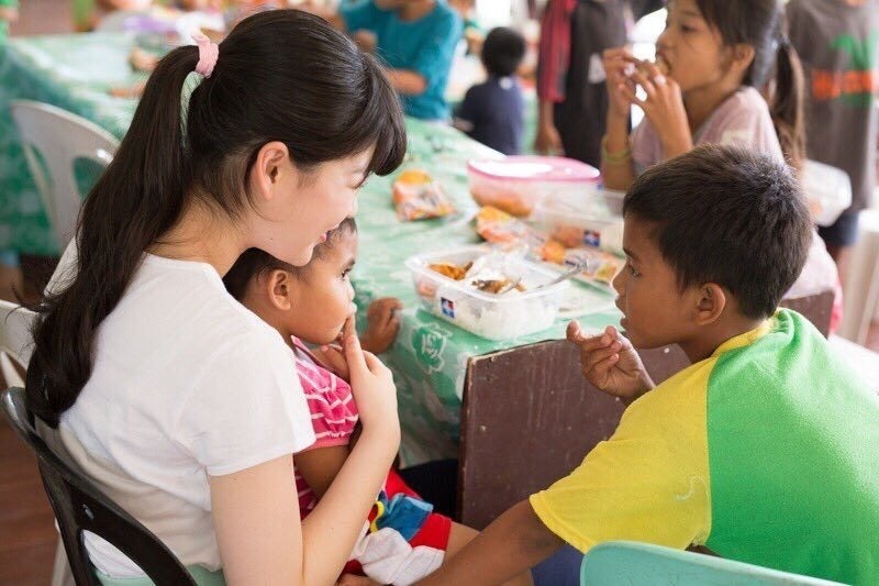 ▶高校3年次にフィリピンの「孤児院」ボランティアを経験(上記写真)