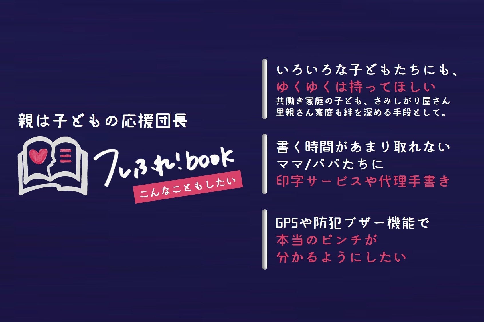 たくさんの試練に小さいころから立ち向かう「子どもたち」に、読むだけで、目にするだけで勇気が出る、前向きになれる、親の愛情という"応援"が詰まった「フレふれbook」を作りたいと考えています。