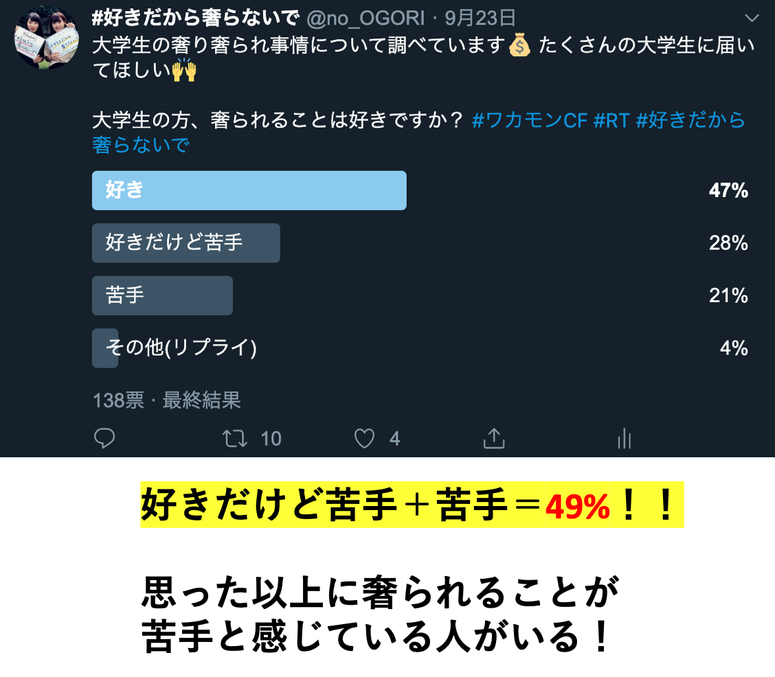 【9/23 ツイッターで奢りについてのアンケートをとりました!!】