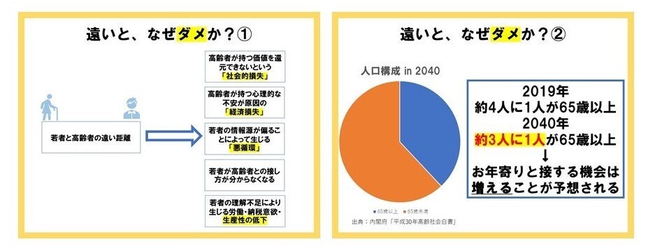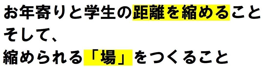 特に日本の未来を考えたときに重要な二要素である「若者」と「お年寄り」の距離が遠く、また、お互いを知る機会がないのは良くないことではないかと考えています。