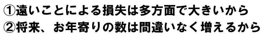 日本の未来を考えたときに、お年寄りを批判したり、ネガティブな議論を展開してもなにも生み出さないどころか、「未来のお年寄り」である自らの首を絞めることにもなります。