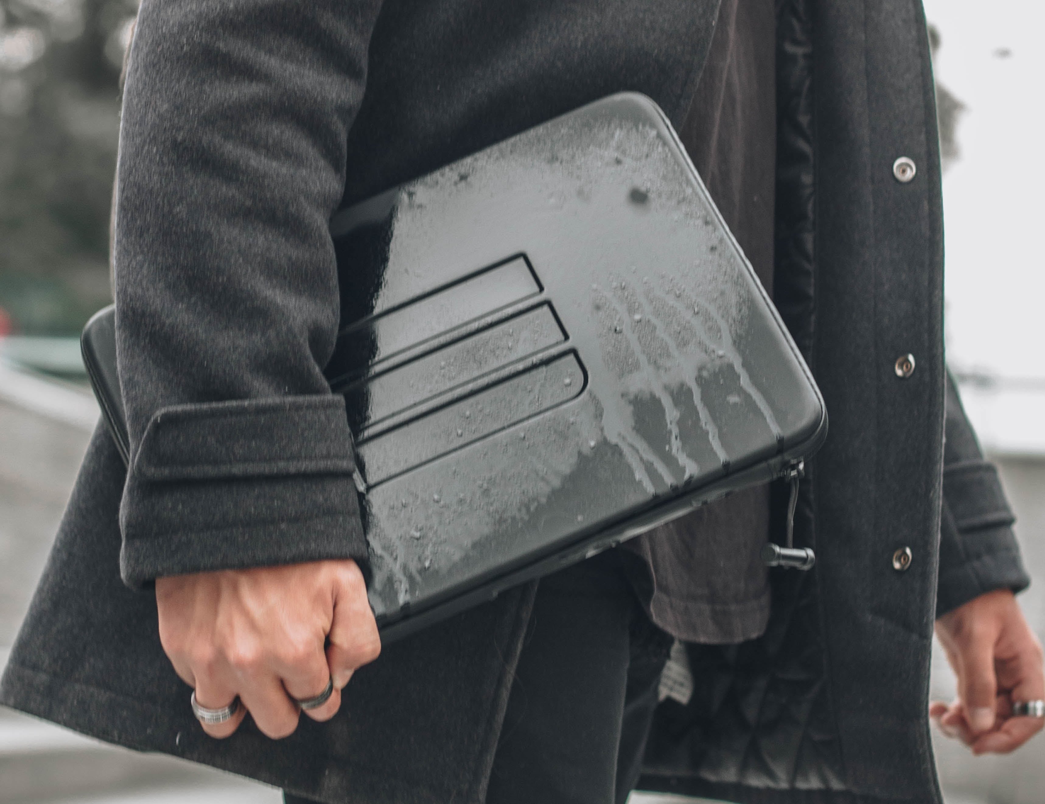 「PCDRYCASE」は今までにありそうでなかった、アウトドア、仕事とどちらでも快適に使用可能な、撥水、耐衝撃、頑丈なのに軽量!クールでカッコイイデザインの究極のパソコンケースです。
