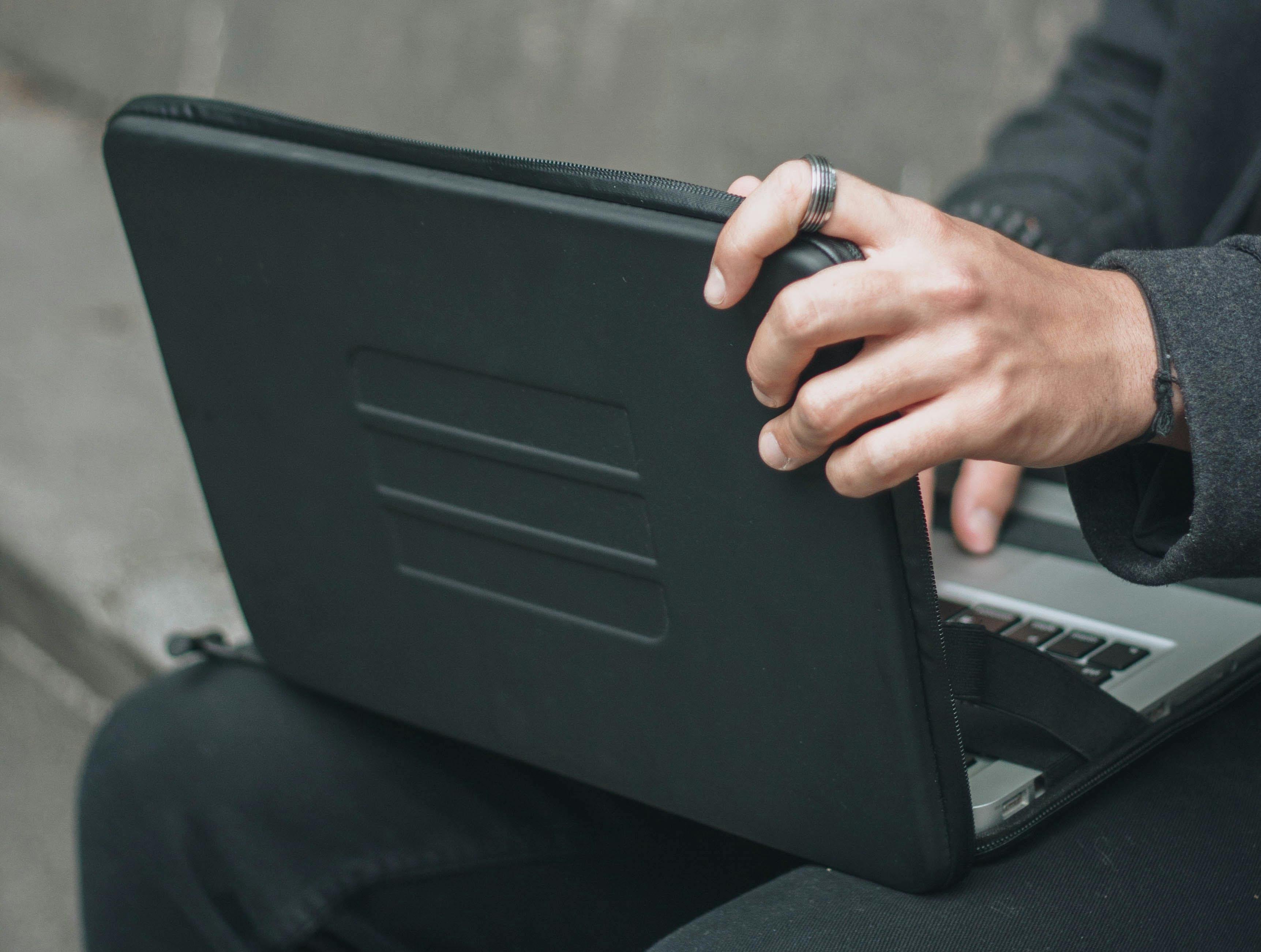 アウトドアや旅行好きのノマドワーカーに最適のパソコンケースです!もちろんカフェや街での使用にも最適です。