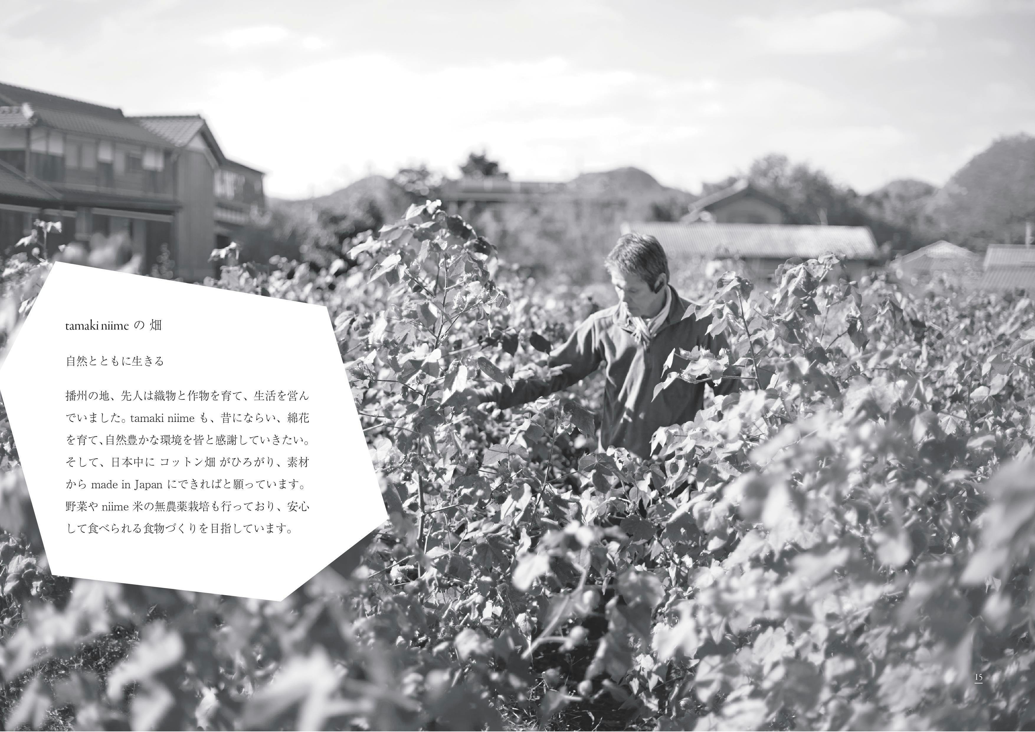 播州の地、先人は織物と作物を育て、生活を営んでいました。tamaki niimeも、昔にならい、綿花を育て、自然豊かな環境を皆と感謝していきたい。そして、日本中にコットンの畑がひろがり、素材から made in Japan にできればと願っています。