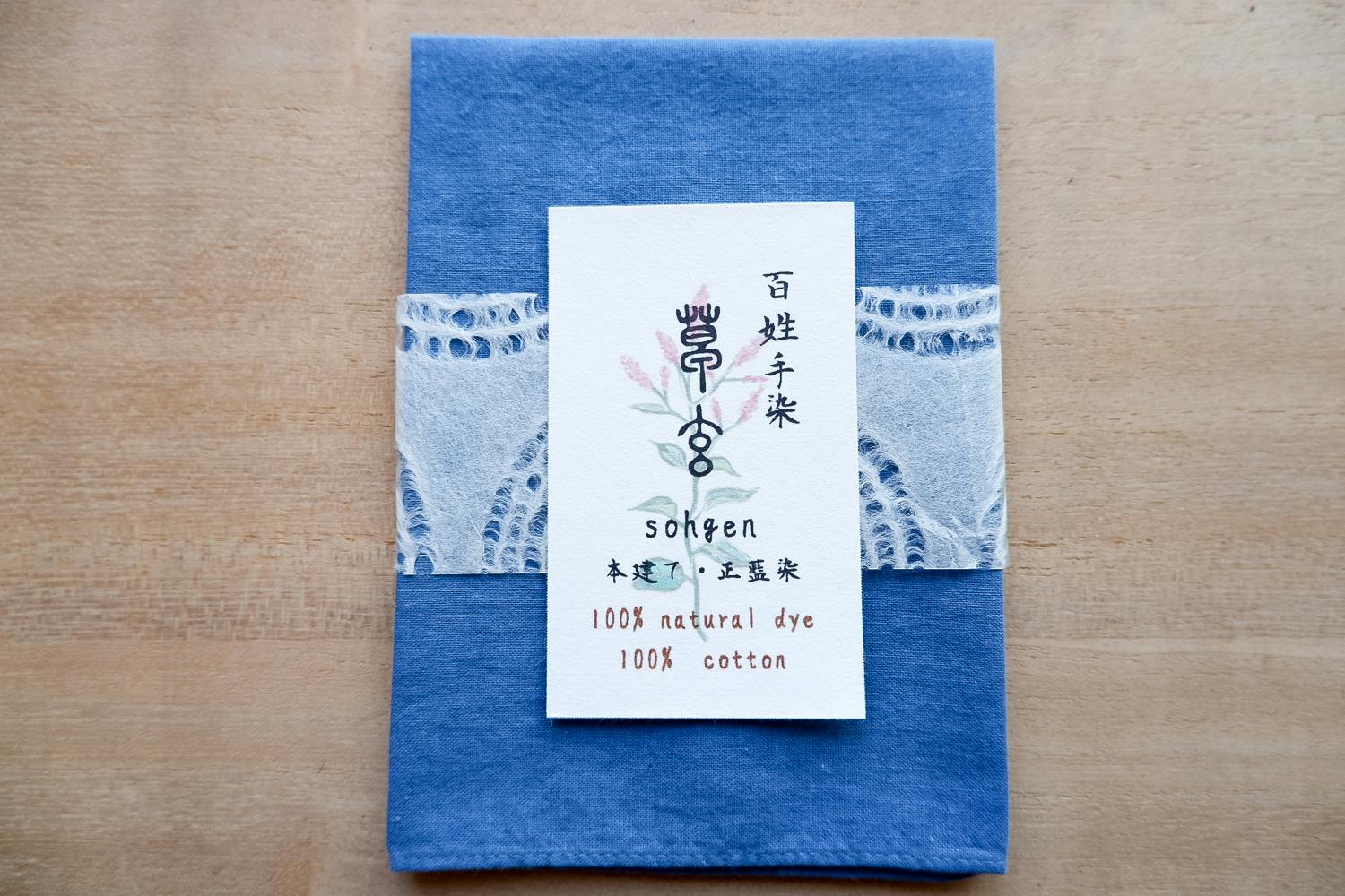 岡山で本建て正藍染めをしている『百姓手染 草玄』さんのハンカチも制作中です。プロジェクトチームの友人がこの活動に賛同してくれました。こちらはもうすぐ完成します。