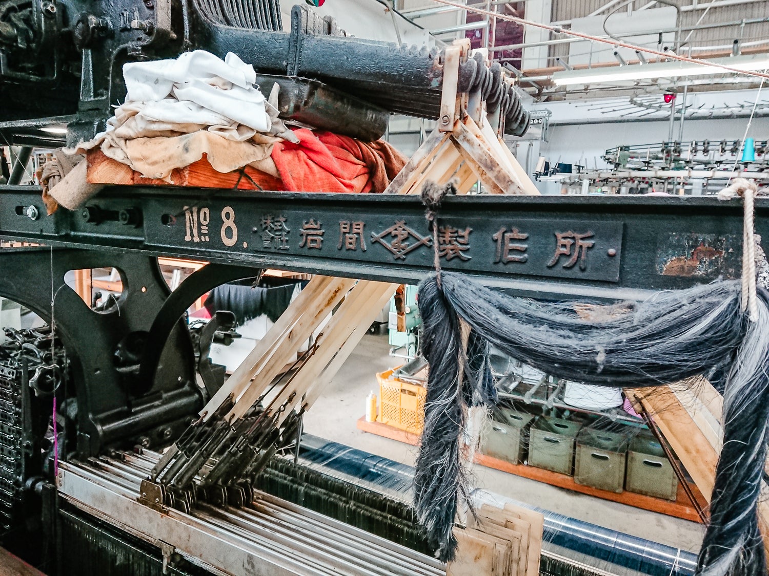 ランチ後は、Labの中を見せて頂きました。日本各地から集めたという、1960年代製という古い織物機械が、所狭しと置かれています。ベルトのモーターから丸い滑車が動き、縦糸や横色の様々なパーツが激しく動き、カラフルな織物がどんどん織られていきます。正に圧巻!古い機械は、手動で色を変え、模様を作っているとのこと。新しい機械は、模様をプログラム可能。毎日どの色の糸を使ったか、綺麗に台帳にまとまっています。