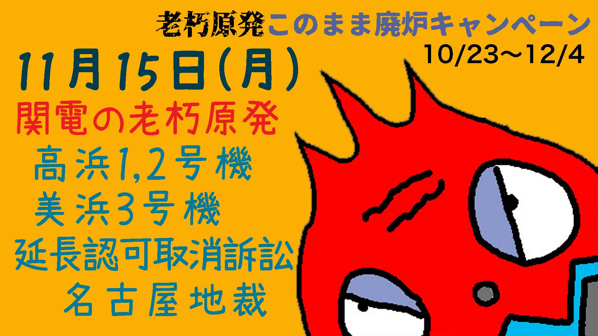 【1】11/15(月)高浜1・2号+美浜3号 運転延長認可取消訴訟