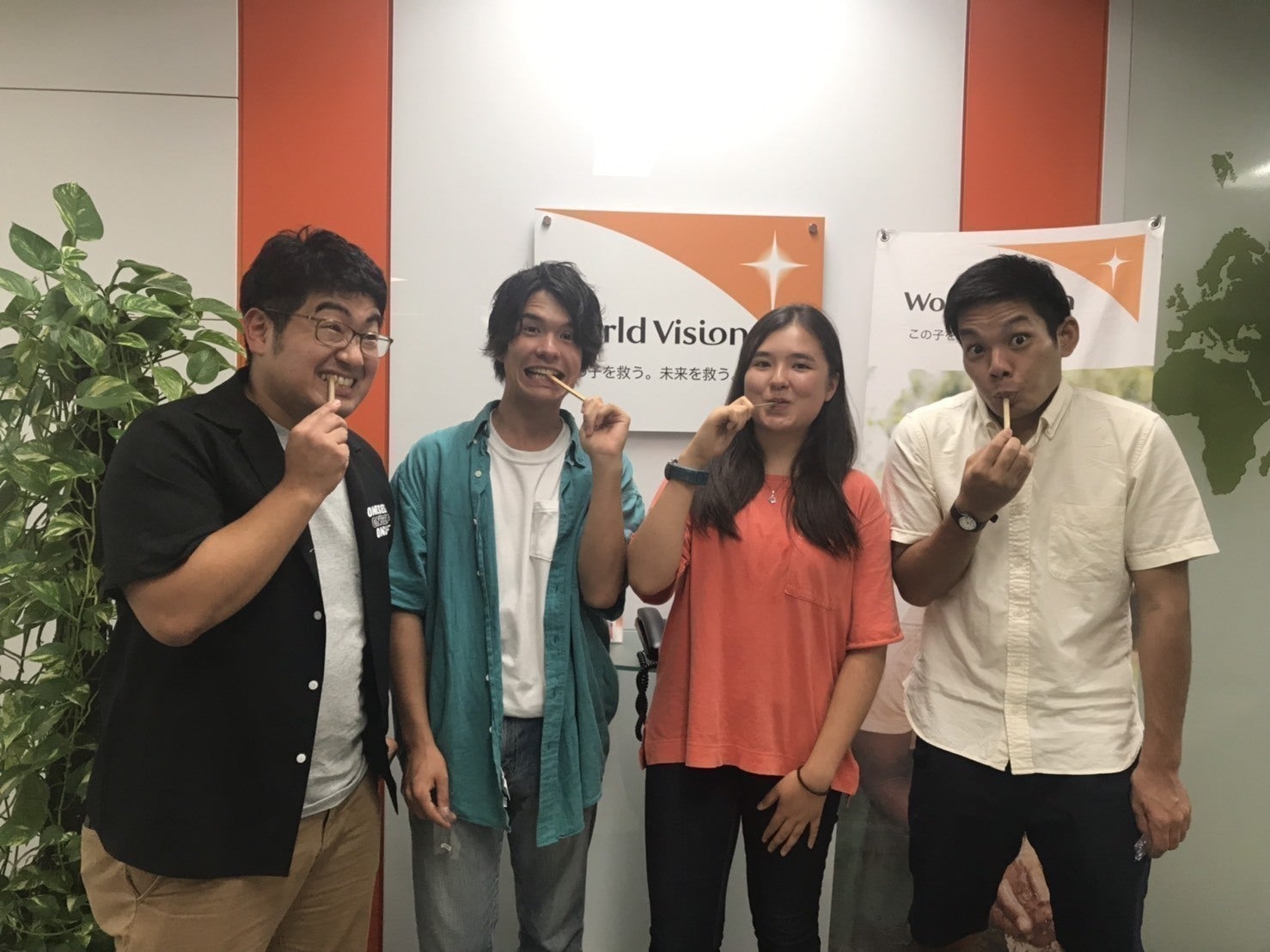 現地の木を使って歯ブラシを作り、歯を磨くことの重要性を伝え歯磨きの習慣を作ることで笑顔をつくり、平和をもたらす。この着眼点、そして強い信念に感動、共感しました。