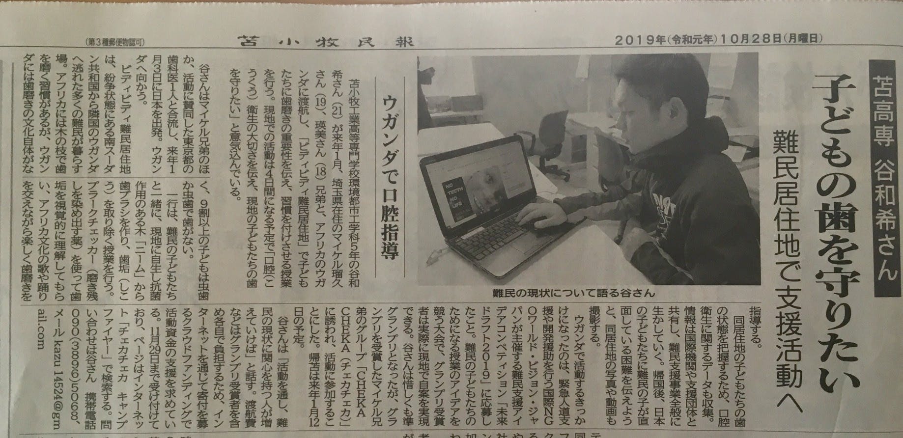 ところで、先日チェカチェカの活動が北海道、苫小牧民報に取り上げていただきました!