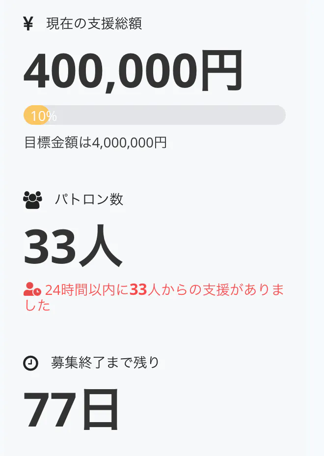 40万円ものご支援をいただきました!