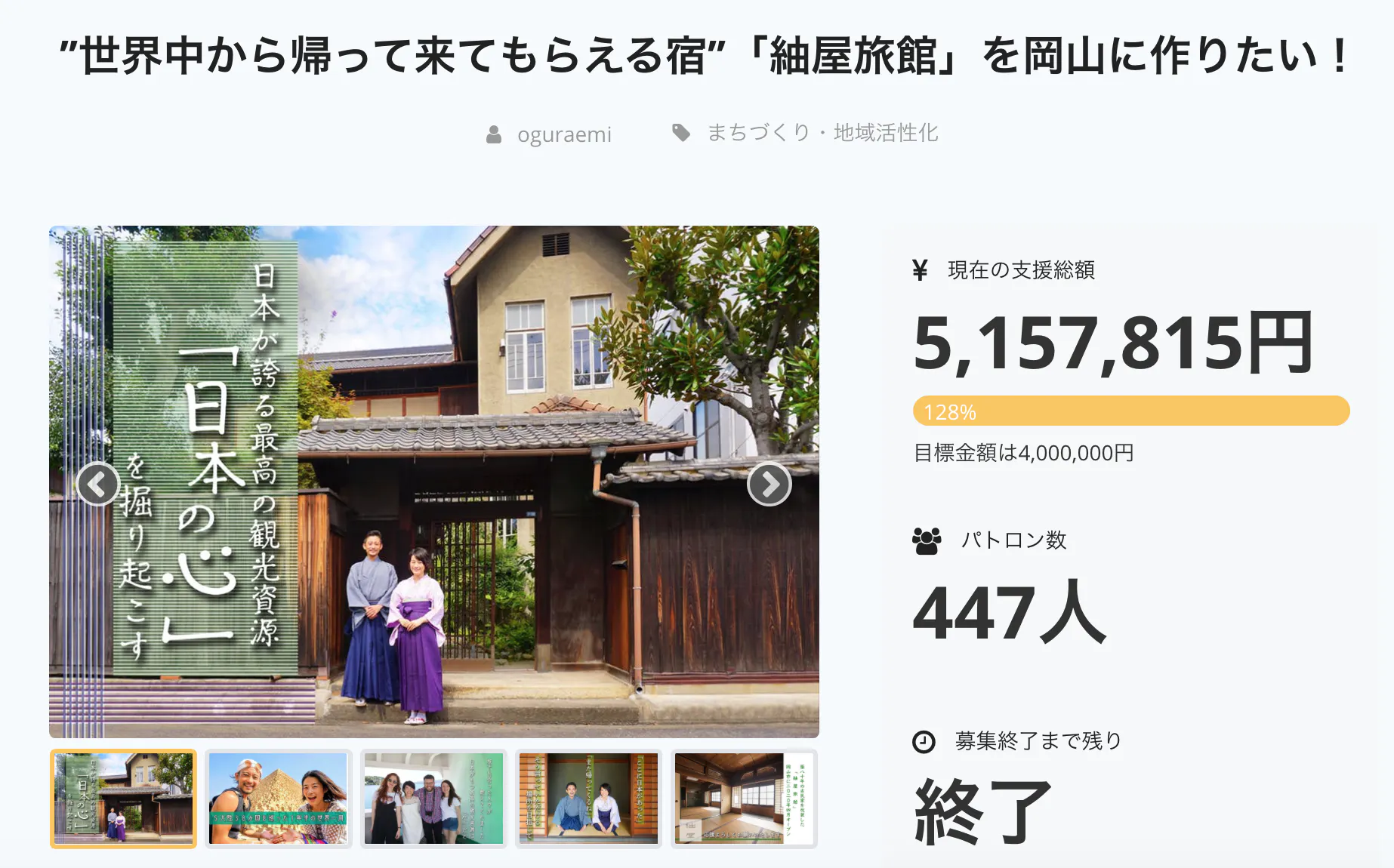 クラウドファンディングの応援本当にありがとうございました。
