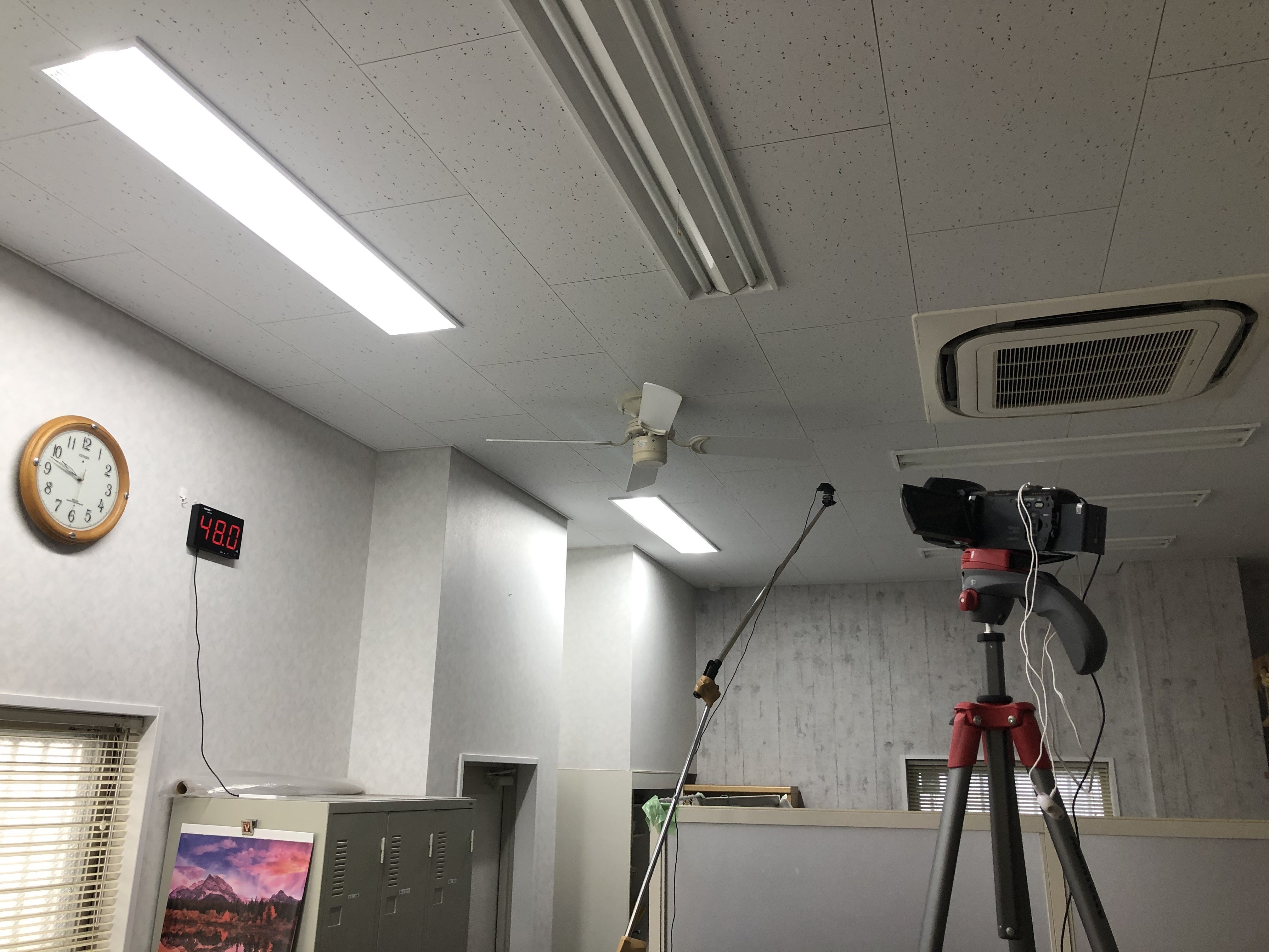 試作台セットを移動して木造建物で試打時に1階の計測風景