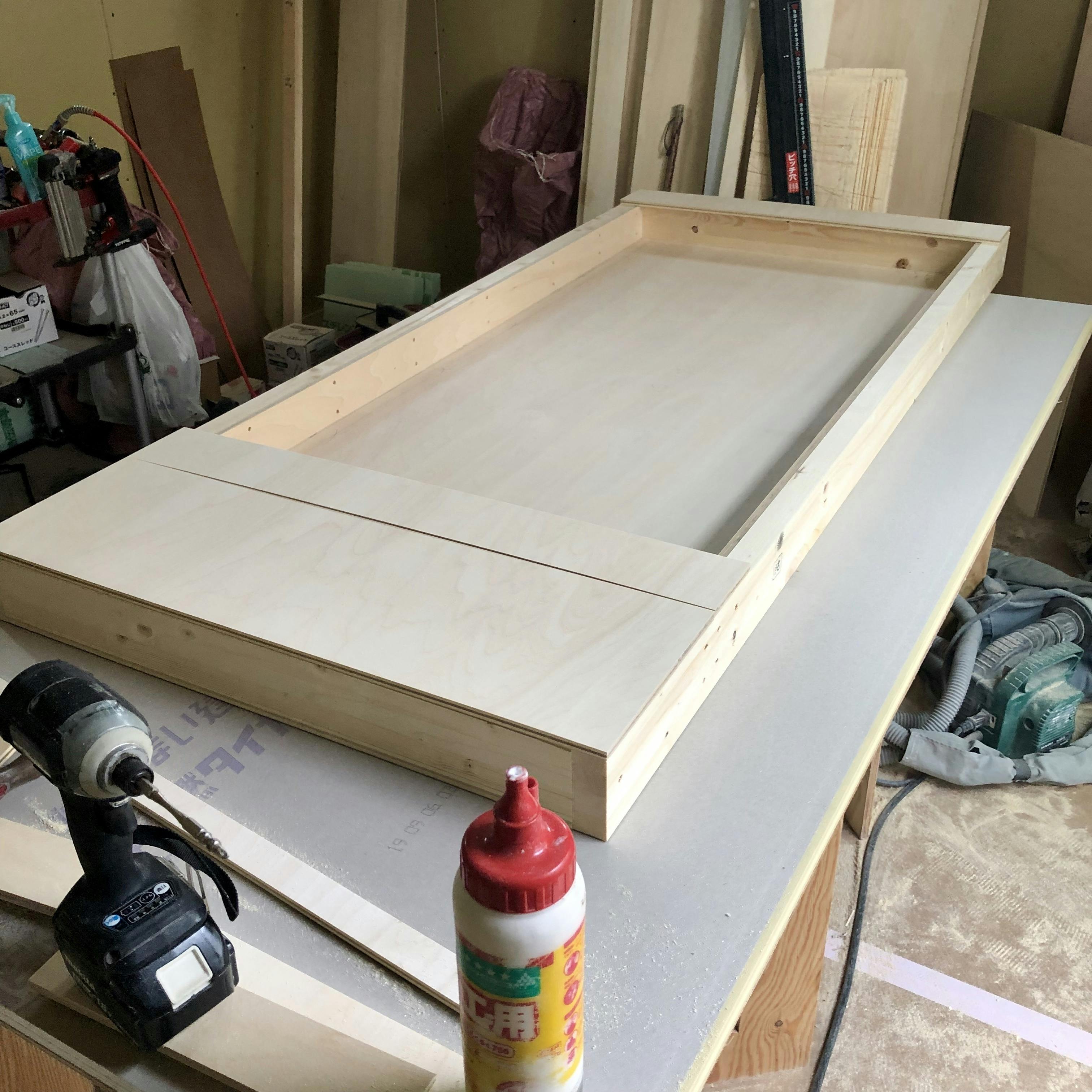 「振動音低減ゴルフ打席」木部パーツが完成しました!これから塗装を行います。※当初、主要なパーツは4分割の予定でしたがパーツ当たりの重量と可搬性の兼ね合いで5分割となりました。