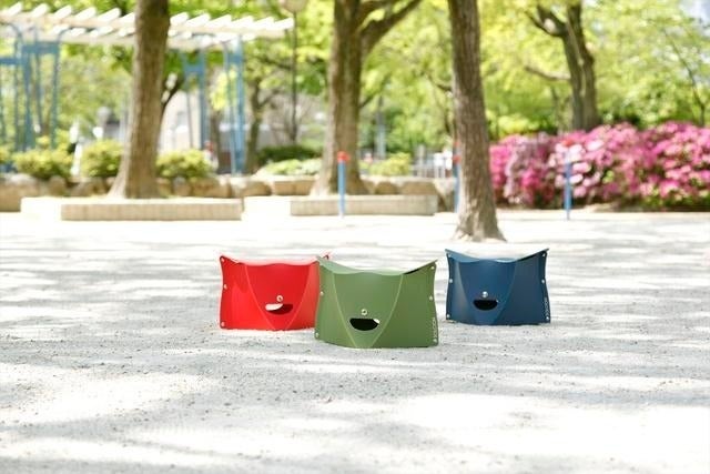 通常の折り畳みのイスに比べると一目瞭然。車のトランクやカバンに何枚も収納可能です。