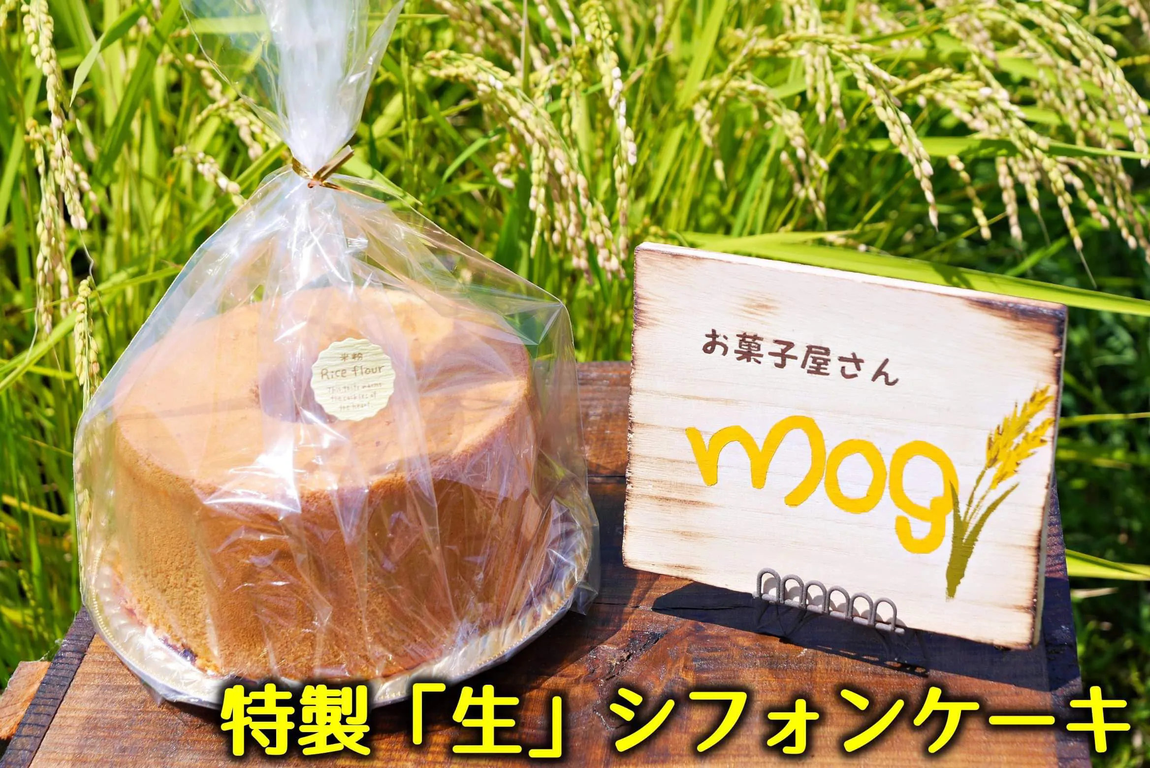 地元魚沼でひそかに人気のある、お菓子屋さんmogの米粉シフォンケーキ。