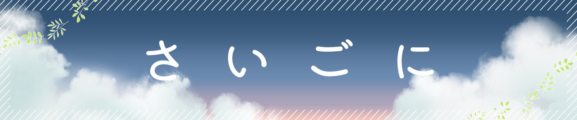 ・ご提供させていただきました音源などの各種権利につきまして、個人利用の範囲内でお楽しみくださいませ。転売/二次配布/各種作品への利用などはご遠慮ください。
