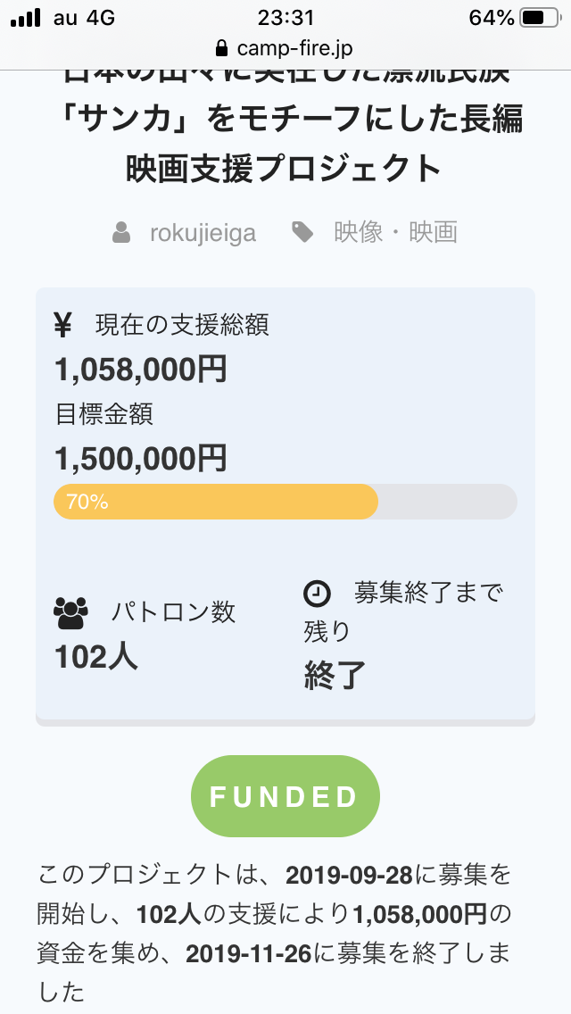 昨夜をもちまして約2ヶ月に渡るクラウドファンディングが終了しました。お陰様で1058000円のご支援が集まりました。ありがとうございます。本当に、それ以外の言葉が見つかりません。映画が、そして、私が、いかに支えられているかを痛感しました。感謝以外にありません。そして思っていた以上に、学ぶ事が多いクラウドファンディングでした。劇映画初監督の私が、どのように立っているべきなのか、様々な事を気づかされました。本当はお一人お一人、握手をしてお礼を言いたいのですが、このような文面で書いてしまう事、どうかお許し下さい。しかし、何度も書くように、「これから」なんです。これからこの映画をどこまで持っていけるのか、私が何になるのか、本当の勝負はここからだと思っています。どうかどうか見守ってやってください。では取り急ぎ失礼します。本当に本当にありがとうございました。