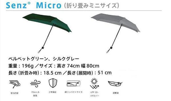 Senz゜の数あるモデルの中で、今年6月に欧州でデビューしたばかりのSenz゜Microをリターンとさせて頂きます。紫外線にも強い、軽量・コンパクトな晴雨兼用です。