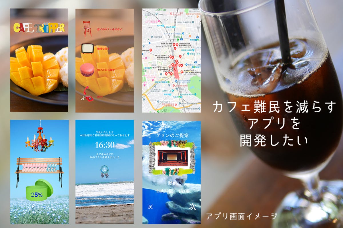 カフェへ行って席がないということを減らすために、カフェの空席状況が可視化できるアプリを開発したいと思っております。