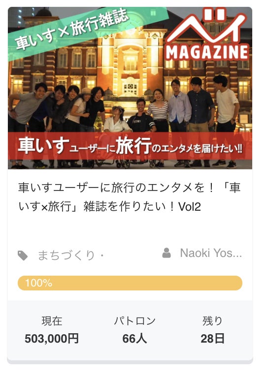2019/09/18 09:31みなさまのご支援のおかげでクラファン3日目で目標金額が達成しました。今回のクラファンの目的は3つあります。1つ目は資金集め。2つ目は車いすユーザーに次回のベィmagazine参加してもらうこと。3つ目はより多くの人に届けること。より多くの人に届けるためにベィmagazineを宣伝していきます。マスには届かない。だから書店には置けない。だったらクラファンを使ってより多くの人に知ってもらう。それが一番の近道だと思って全力で走ります。引き続き情報の拡散ご協力いただければと思っております。よろしくお願いします!! もっと見る