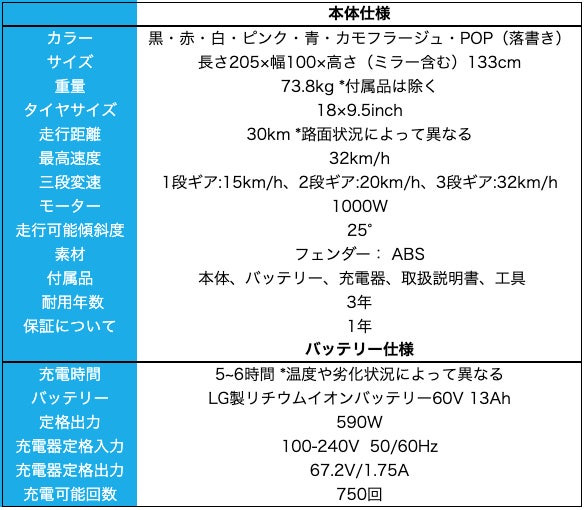 (時速30km/h、乗員重量80kgで平坦な道を連続走行した際)