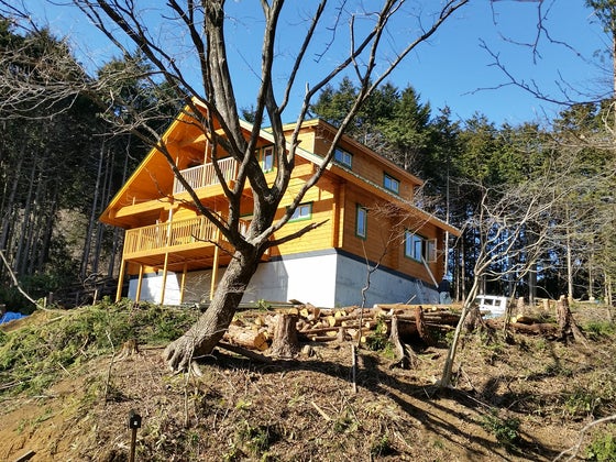 2017/01/25 22:40パトロンになって頂いた皆様、本当に本当にほんっとうにありがとうございました! 合計金額が一週間でほぼ40%に達しました。さらに目標金額に向けて拡散をお願いしています。 A huge thank you to all our supporters. In one week we have almost reached 40% of our goal and are working hard to share this project with more people. We certainly appreciate everything, you are helping to make a dream become reality! 井戸の建築が今週始まりました。写真は、水源にある古井戸の泥を取り除いて再生しているところです。水はここからポンプで引き上げられ、200mの道のりを経て我が家に到着します。実は当初は私たちの土地内で井戸を掘る計画でしたが、150mの掘削をしても十分な水を得ることができませんでした。この問題に地元の有志の方々が知恵をしぼり十何年も放置されていた古井戸を再生することを提案してくださり、また土地の保有者の方にも快諾していただきました。皆様のサポートなしにここまで来ることは不可能でした。 Well construction started this week, and the main well is being prepared so we will be able to pump water up to our house. Actually the well is being built on top of a spring water source, and then will have to be pumped 200 meters to our house. We were not able to get water on our land, but the local community is supporting us and the neighbor has offered to let us hook into an unused well. We would be in big trouble without his support! 我が家の給水システムを簡単に説明すると、まず写真のコンクリート槽へ水が溜まります。ここで泥は下に溜まり溢れた水が貯水槽へ溜まります。ここからポンプアップされて中間槽まで引き上げられ、さらに家の横にある貯水槽へと引き上げられます。最初の貯水槽から一番上の貯水槽までは200mあり、高低差は65mになります。3つの貯水槽がそれぞれ常時貯水することができるので、渇水時でも数日分の水は蓄えておけます。保有者によると渇水期でも最長1日あれば再び貯水槽に溜まり始めるということです。十分な給水が見込めるとはいえ、やはり水は森の恵みであることを自覚して節水には心がける必要があります。 Basically the water fill up in the above cistern and then once full the water flows out of the top to allow any sediment to settle at the bottom and the clean water goes to another tank with a pump which pumps the water up to a mid-station tank about 100 meters away. This mid-station also has a pump which pushes the water up to another tank at our house. There will be 200 meters of pipe, which has to bring the water up a height of 65 feet from the well to our house. We will be able to store over 1,000L of water throughout the entire system, so in the event of a dry period we will still have plenty of water to allow the spring and well to recover. The owner said it sometimes goes dry, but usually never for more than a day. It hasn't rained in weeks and this is a very dry period, but the well was filling up quite quickly so we are confident to be able to live up here though have to conserve water as it is still a limited resource. キッチンもだいぶ形になってきました。 こちらのキッチンは自分たちでアメリカで購入し(ヒッコリーキャビネットとコリアントップです)、日本へ空輸しました。細かいことに関してはメインユーザーとなるちかの希望に合わせてもらいました。一番のこだわりは、夢であったアメリカンサイズのビルトインガスオーブン式5口コンロ!!宝物です。ベーグルがいっぺんに何個焼けるだろう。。。 The kitchen is nearly finished with just a little more plumbing work to be completed. The kitchen was imported from the states and has hickory wood cabinets with a Corian countertop and seamless integrated acryllic 2-basin sink. Chika's dream kitchen! Also an American gas stove with oven for baking lots of yummy treats. 二階はこんな感じです。夜景もきれいですよ。中にソファを置き、外にはハンモックを下げますのでゲストの方にはコーヒー片手に本でも読みながらゆっくりしてほしいです。 A view of the 2nd floor hall and balcony which has an absolutely amazing view. We'll put a comfy sofa in the hall for reading, and a nice hammack outside as well. 1階のリビングです。秋には紅葉も見れます。窓の間に麓の鉄工所で作って頂いた薪ストーブを設置します。冬にはこれが主な暖房となります。ダイニングテーブルは目下作成中で、ひのきで作ってます。 1F living room and dining area. There will be a locally made wood stove installed between the two deck doors which will heat the entire house in winter. We are currently making a table from Hinoki (Japanese Cyprus) to serve as the main dining table. 薪割りが急務です。今日ちょっとだけしました。まーだこんなの100分の1以下です。暖かい冬が過ごせそうです。 Did a little firewood chopping today. We still have a ton more wood that needs to be cut, chopped, and stacked, but we'll have a good supply when it comes time to move in February. もっと見る