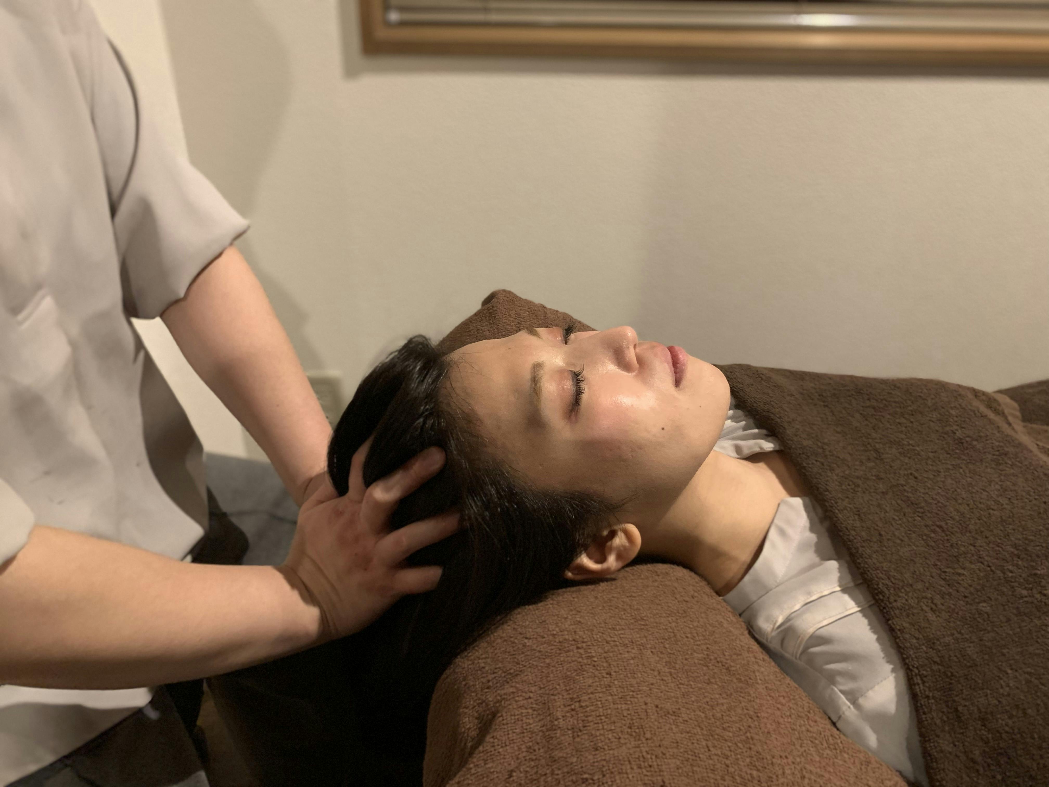 頭の筋肉を掴み、動かし、ほぐす、施術者側にも負担のなくお客様に満足頂けるヘッドスパです。