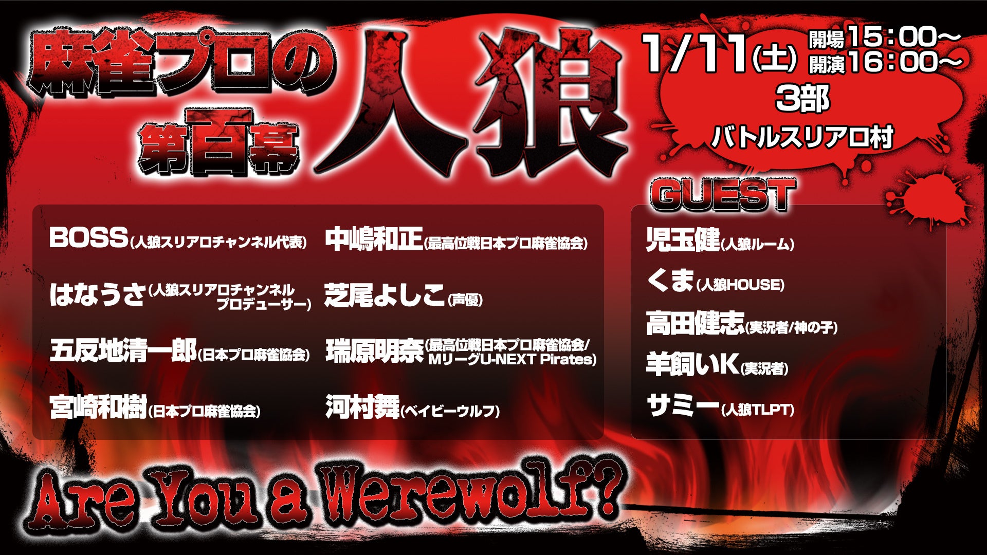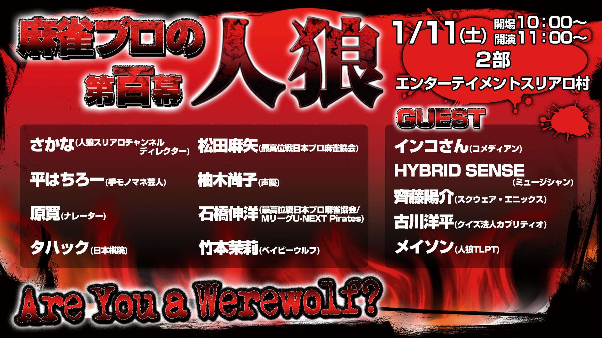 あのMリーガーも人狼では怪しいあの人も百幕に出演しないあのプロもゲスト総勢15名以上!