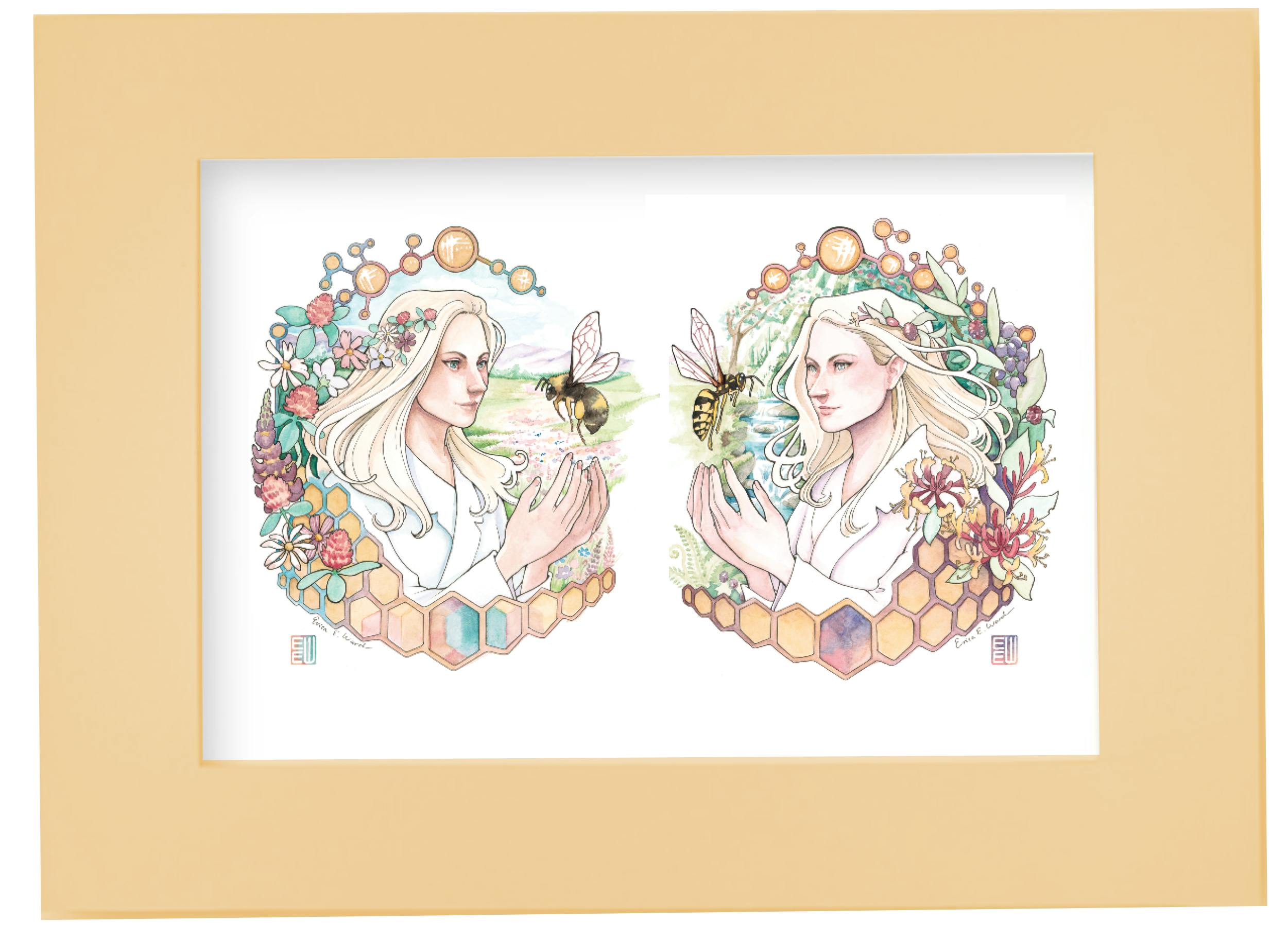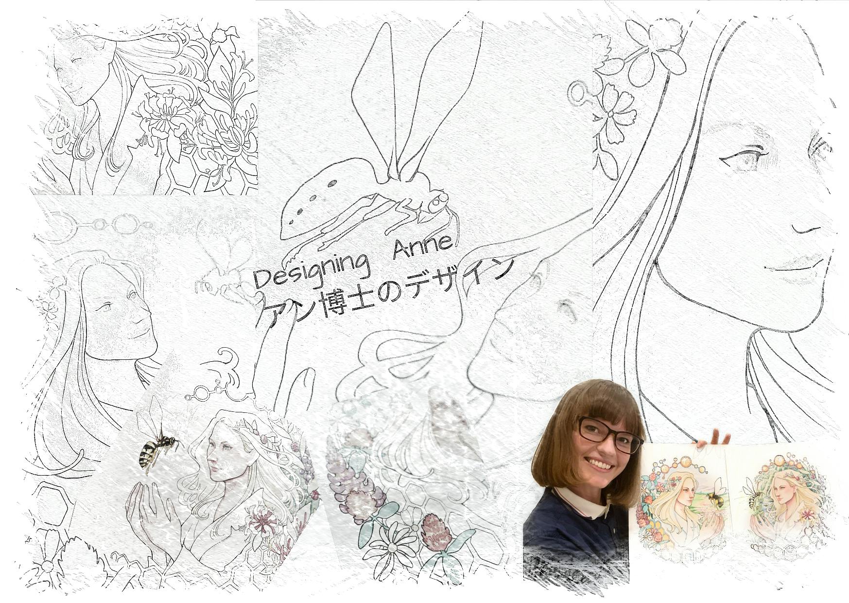 絵の中央にいるのは、この素晴らしい日本酒の公開を実現するため、彼らの特別な秘密を分けてくれるようマルハナバチとアシナガバチに呼びかけているアン博士です。