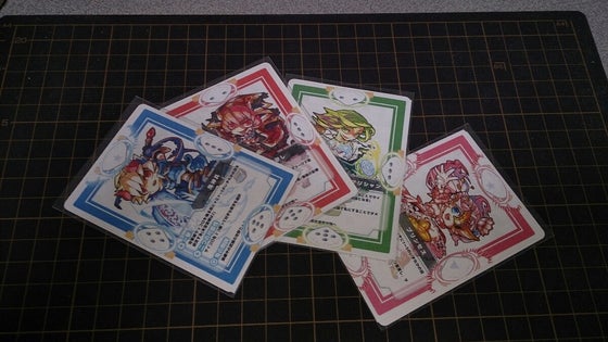2015/05/15 21:11デザインが上がってきたので試しに印刷してみました! とてもいい感じ! 現在、装備のカードと同時進行でプレイ用のマットも作成してもらっています。 そちらもデザイン上がり次第アップしたいと思います! もっと見る