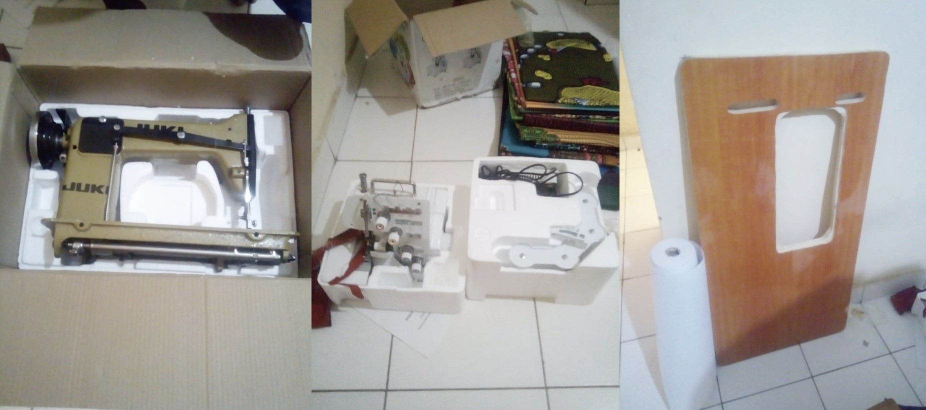 新しく様々なバリエーションのアフリカンファブリック、用途の違うミシンを2台と、ミシン作業用のボードを購入。