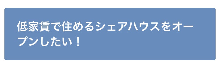 今すぐにでもシェアハウスオープンに着手したいという気持ちがあったものの、経済的な壁が立ちはだかりジレンマを感じていました。