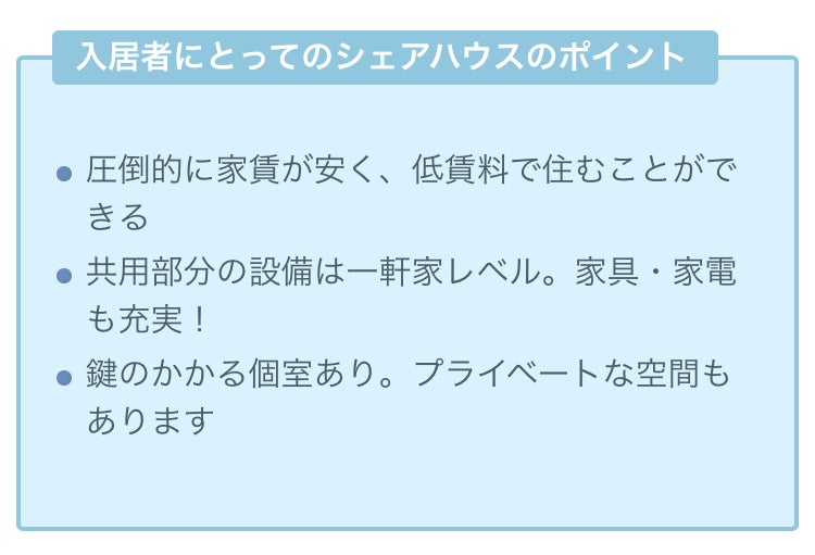 ここが「ルームシェア」との大きな違いです。