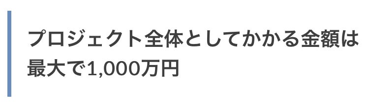プロジェクト全体としてかかる費用は下記の通り。